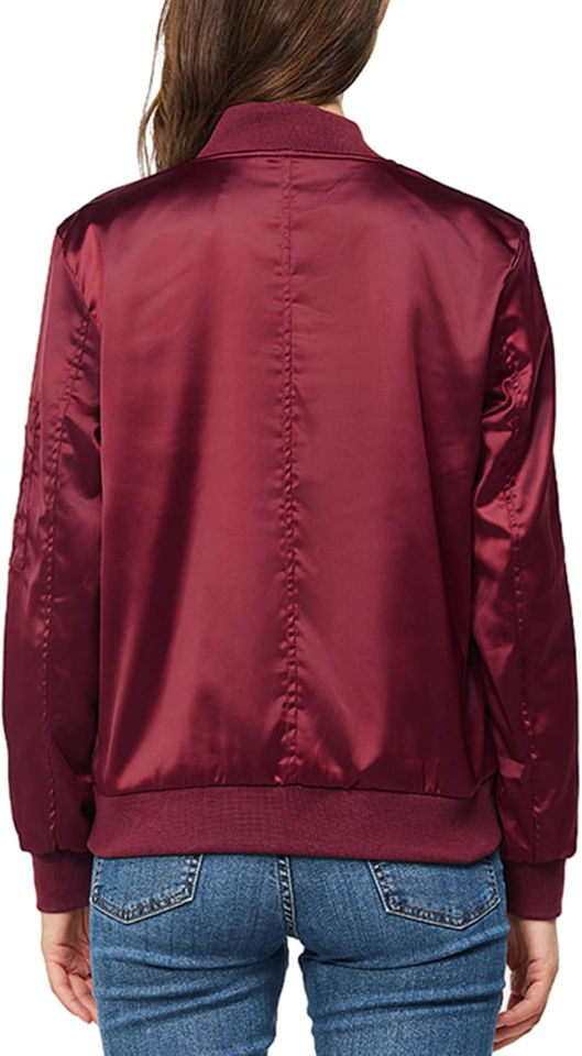 แจ็กเก็ตนักบอมเบอร์ผ้าซาตินสำหรับผู้หญิง2025มีซิปรูดแบบลำลองสำหรับผู้หญิงเสื้อกันลมมีกระเป๋า