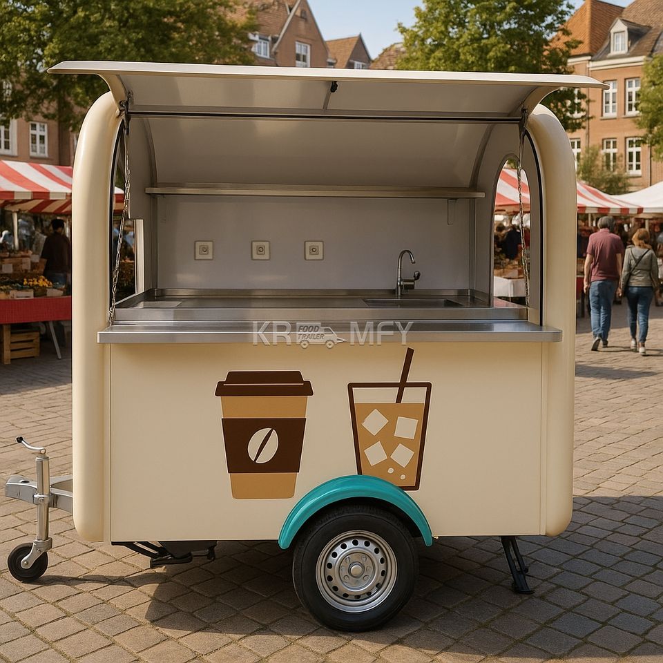 เครื่องพ่วงอาหารเคลื่อนที่สำหรับขายปลีกขนมขบเคี้ยวผลิตภัณฑ์นมขนมฮอทด็อกทำจากบาร์บีคิวทำจากข้าวโพด