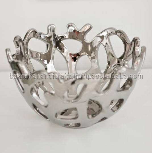 2025 Best Seller Modern Aluminium Serving Fruits Bowl, Silver Coral bowl