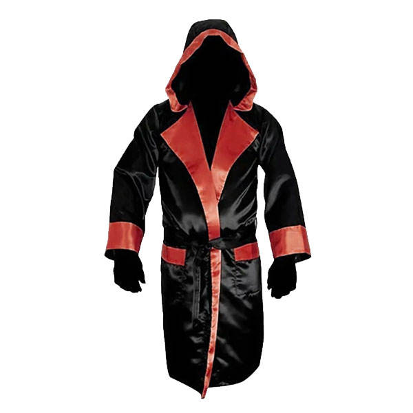 2025ชุดกาวน์มวยโพลีเอสเตอร์พร้อมฮู้ดขนาดโลโก้ที่กำหนดเองสำหรับผู้ใหญ่