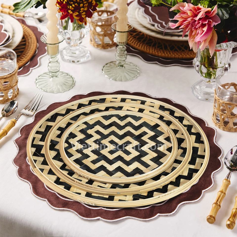 2025ถาดไม้ไผ่เก็บอาหารทรงสี่เหลี่ยมผืนผ้าแกะสลักงานฝีมือสำหรับโต๊ะอาหารค่ำบนโต๊ะในครัวผักตบชวา