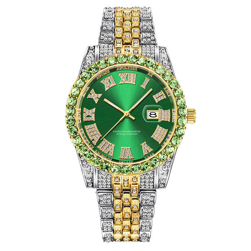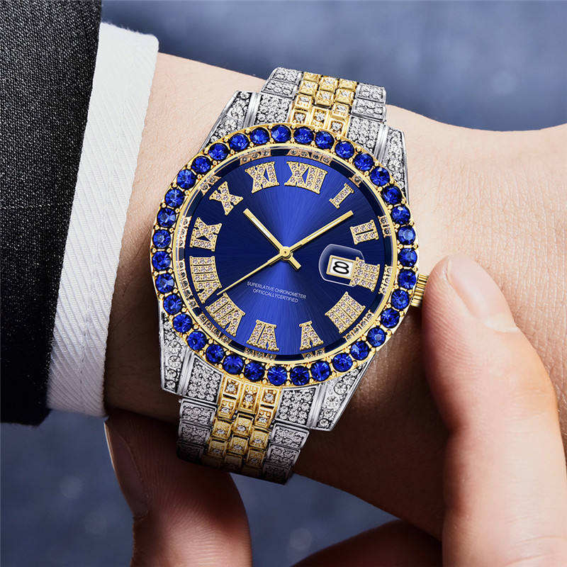 นาฬิกาข้อมือผู้ชายแบรนด์หรูดีไซเนอร์ขายดีที่สุดปี 2025 ประดับเพชรดำ สไตล์ฮิปฮอป ตัวเรือนสแตนเลส กระจกแซฟไฟร์ สายหนัง กันน้ำ 3BAR