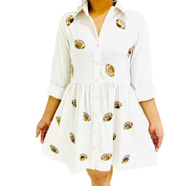 ชื่อสินค้า:ชุดเดรสยาวระดับกลางลายพิมพ์ฟุตบอลสำหรับผู้หญิง แขนกุด ดีไซน์หรูหรา เหมาะสำหรับวันแข่งขัน