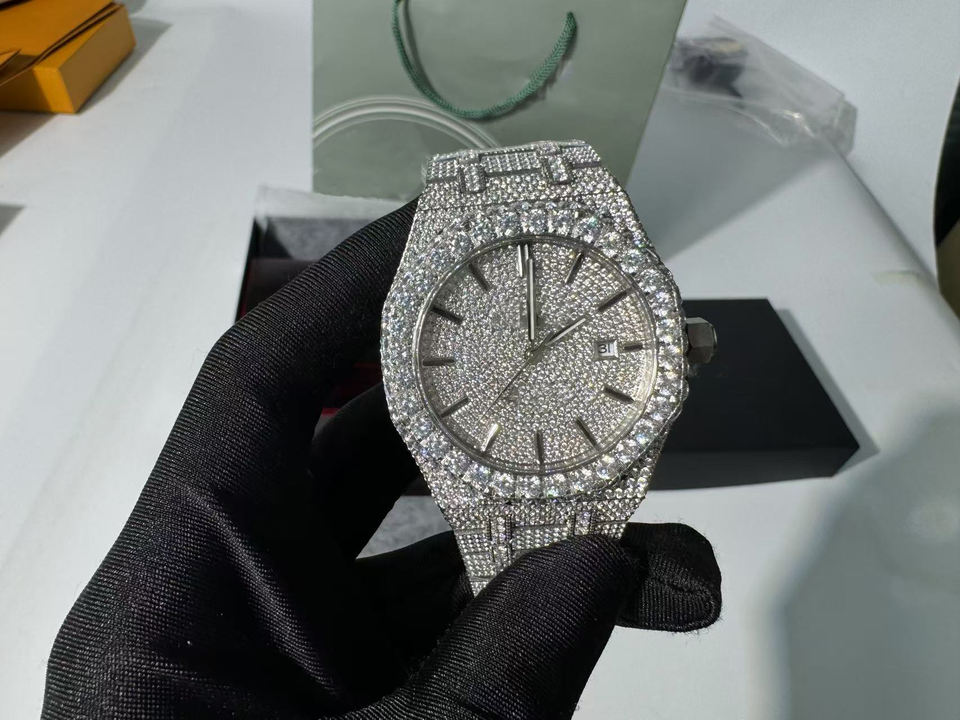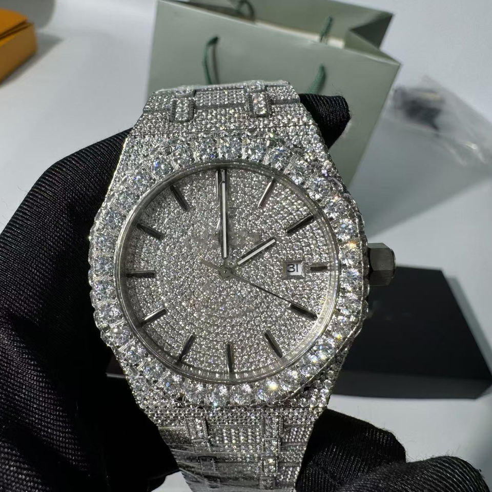 นาฬิกากลไกสำหรับผู้ชายหรูหรา2025อกประดับเพชรรูปดอกไม้น้ำแข็งเครื่องประดับเซรามิกใหม่