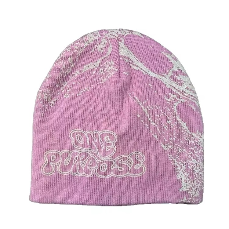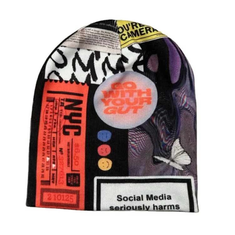 หมวกบีนนี่ถักสำหรับทุกเพศหมวกบีนนี่พิมพ์ลายแบบระเหิดติดแขนเสื้อสำหรับฤดูหนาวหมวกบีนนี่ผ้าแจ็คการ์ด