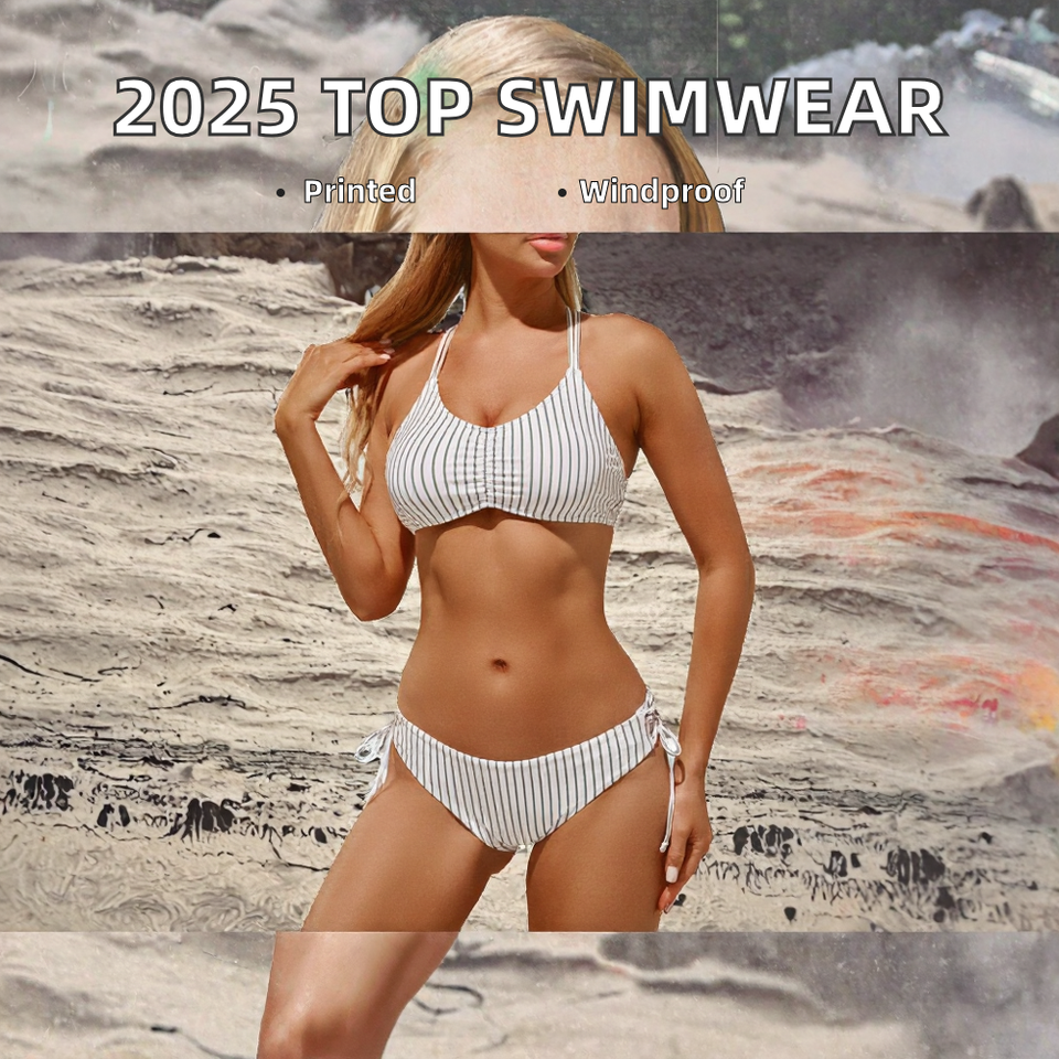 ชุดว่ายน้ำบิกินี่แบบทูพีซ สายไขว้ด้านหน้า สำหรับผู้หญิง ขายดีประจำปี 2025 ผ้าสแปนเด็กซ์/โพลีเอสเตอร์ แห้งเร็ว เป็นมิตรกับสิ่งแวดล้อม ไซส์ XL