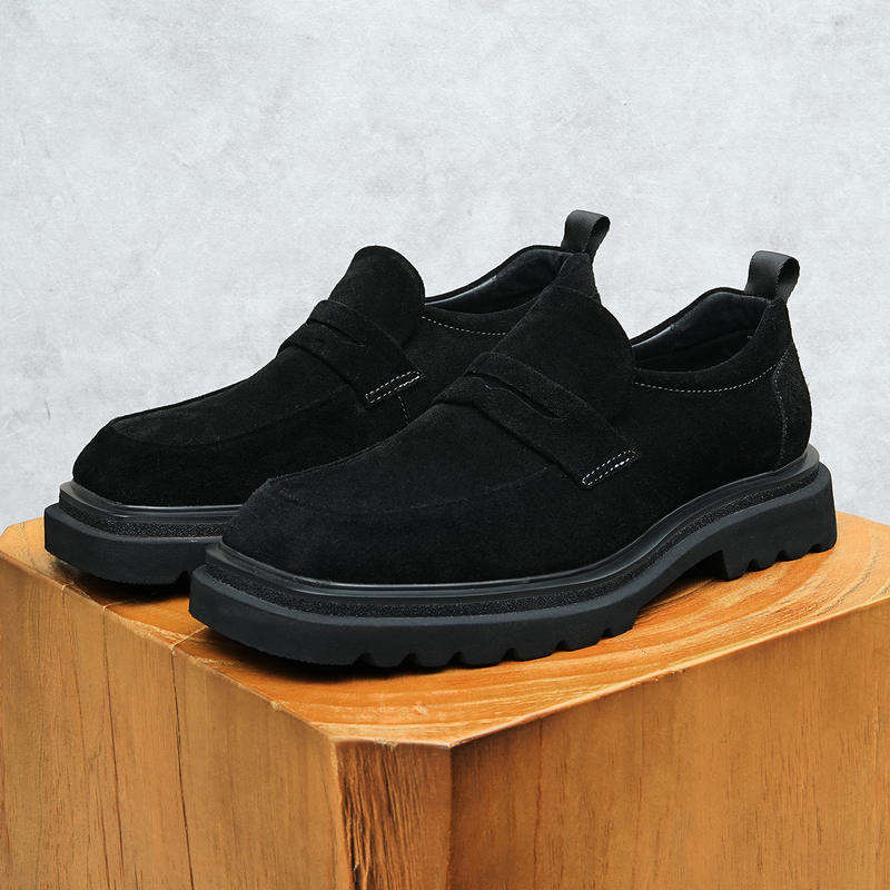 รองเท้าหนังแท้ผู้ชายขายดีประจำปี 2025 ป้องกันการลื่น หัวมน พื้นหนา ส้นสูง สไตล์ลำลองและรองเท้าทางการ