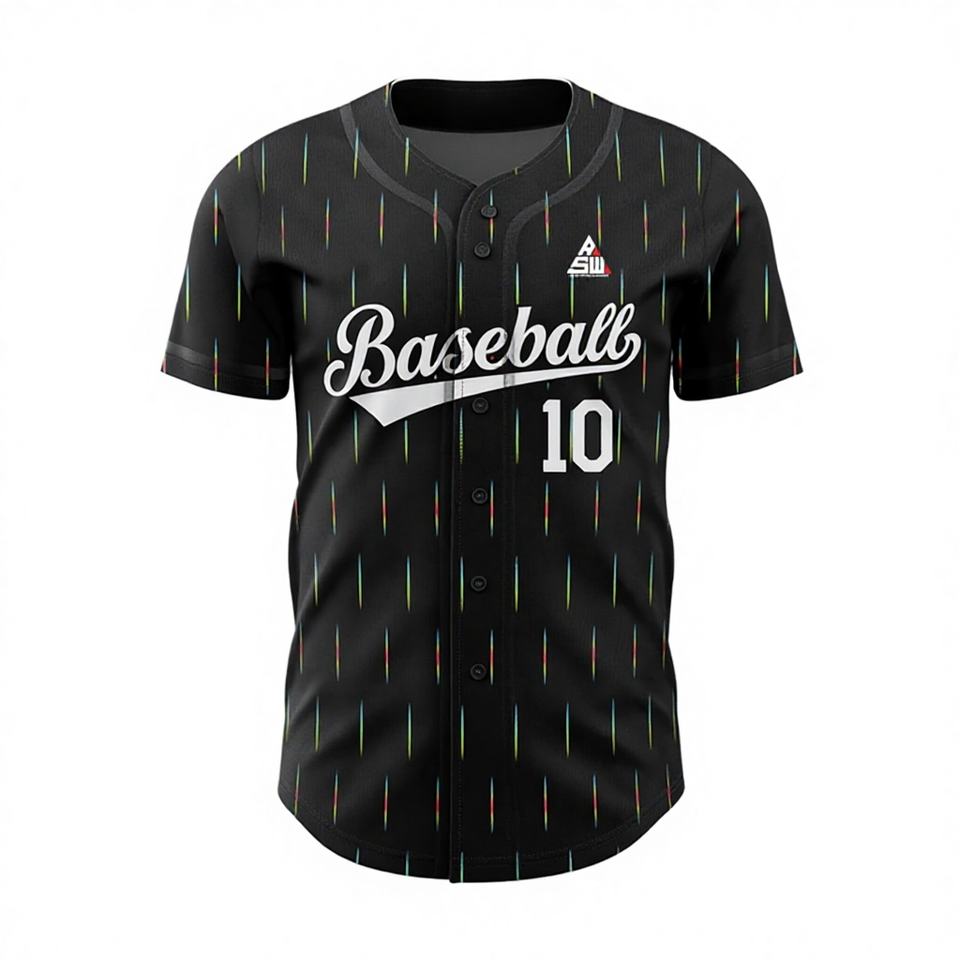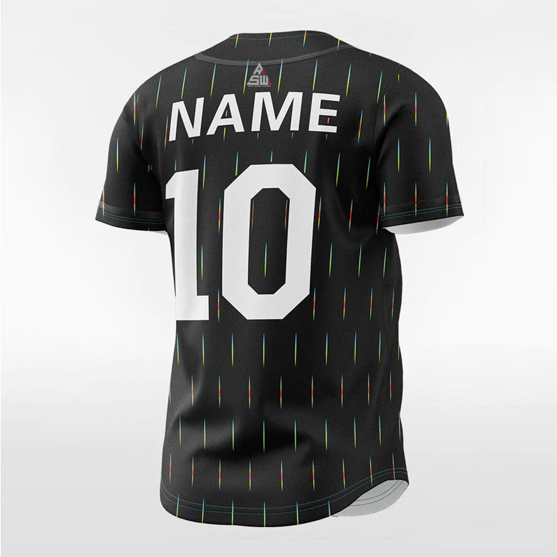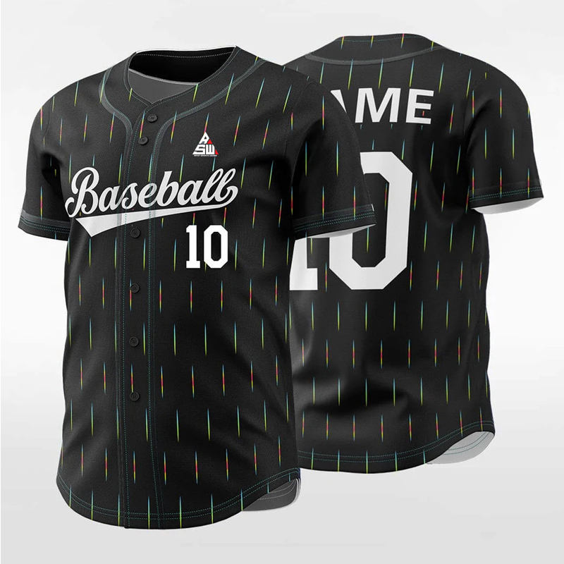 เสื้อเบสบอลสีดำปี 2025 แขนสั้น ป้องกันแบคทีเรีย ดีไซน์ติดกระดุม ปรับแต่งชื่อและหมายเลขได้ สไตล์โปรสำหรับทีม