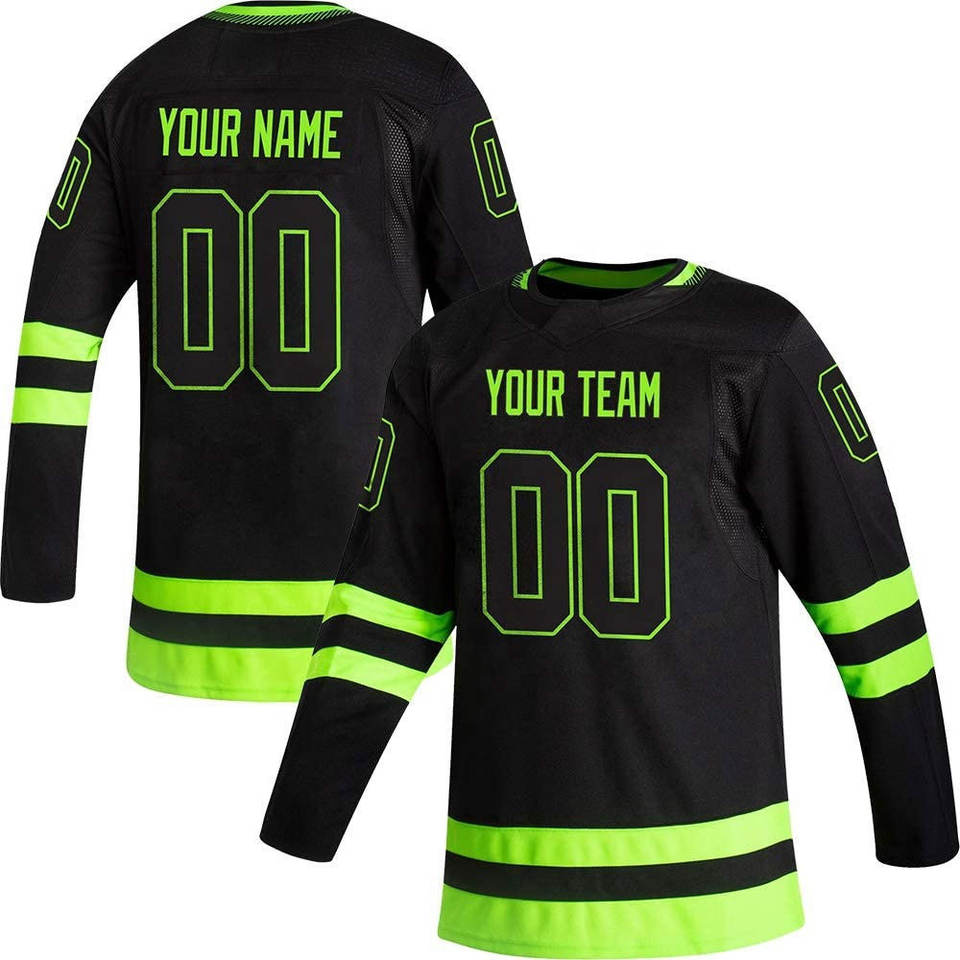 เสื้อเจอร์ซีย์ฮ็อกกี้น้ำแข็งสีดำ2025ออกแบบได้ตามที่ต้องการสำหรับผู้ชายผู้หญิงและ S-5XL ปักชื่อและตัวเลขของแท้