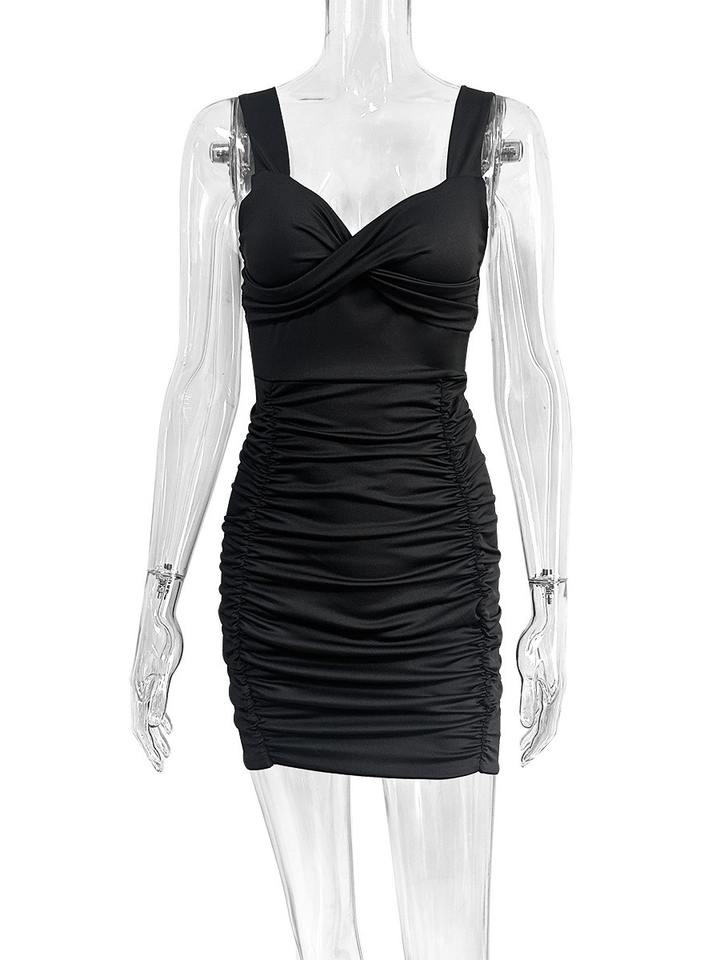 เดรสสีดำทรงเข้ารูป กระโปรงสั้น จับจีบ ดีไซน์ใหม่ ปี 2025 คอวีลึก เปิดหลัง ดูหรูหรา สไตล์ลำลอง สำหรับผู้หญิง