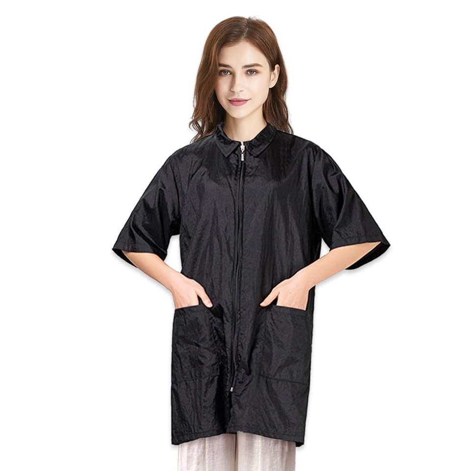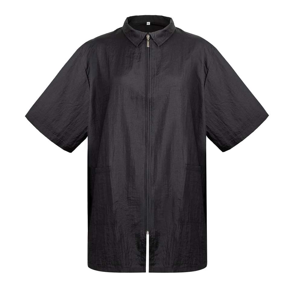 แจ็กเก็ตสำหรับช่างตัดผมผ้าไนลอนสีดำมีซิปปิดสำหรับร้านเสริมสวยร้านตัดผมสำหรับสุนัขสัตว์เลี้ยงเสื้อทำงานกรูมมิ่ง-M