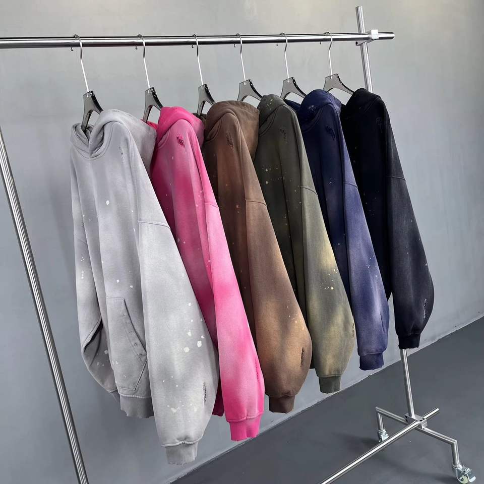 เสื้อฮู้ดครอปปี 2025 แบบวินเทจ ลุคทำสีซีดแบบย้อมกรด ทรงปกติ ผ้าฟลีซสำหรับฤดูหนาว สไตล์สตรีทแวร์ ขอบดิบ