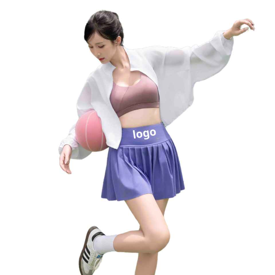 ชุดกีฬา2ชิ้นสไตล์ไมโครสีฟ้า2025คอลึกยืดได้4ทางกระโปรงบิกินี่แบบปรับแต่งได้