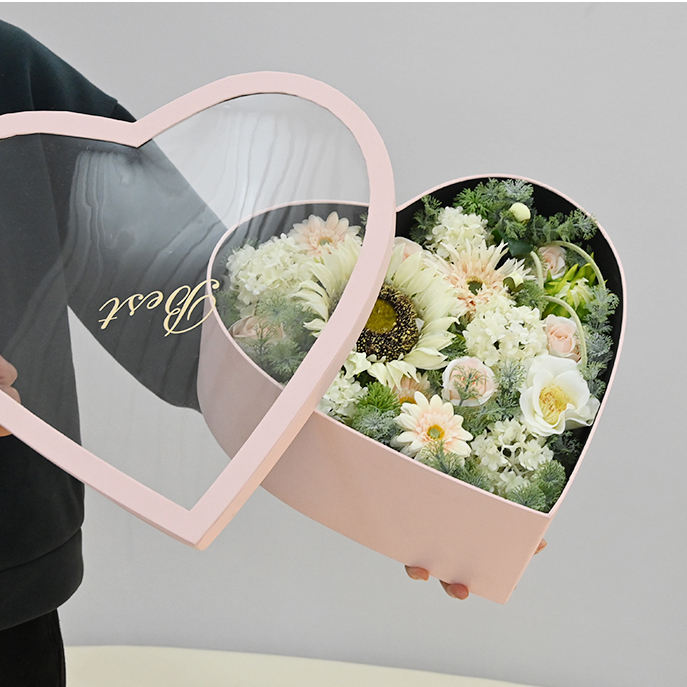 กล่องใส่ดอกไม้2025แฟชั่นรูปหัวใจสั่งทำได้กล่องดอกไม้วันคริสต์มาสวาเลนไทน์