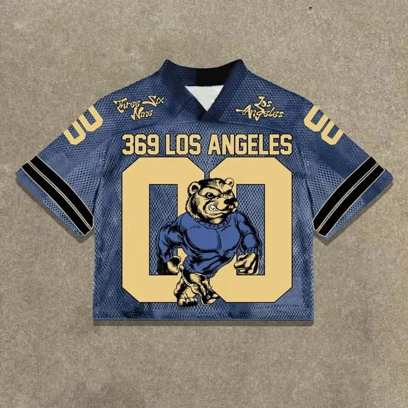 เสื้อเจอร์ซีย์ฟุตบอลอเมริกันโอเวอร์ไซส์2025 boxy เสื้อแฟชั่นฮิปฮอปผ้าตาข่ายแนวสตรีทย้อนยุค