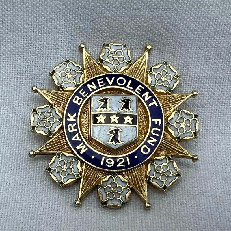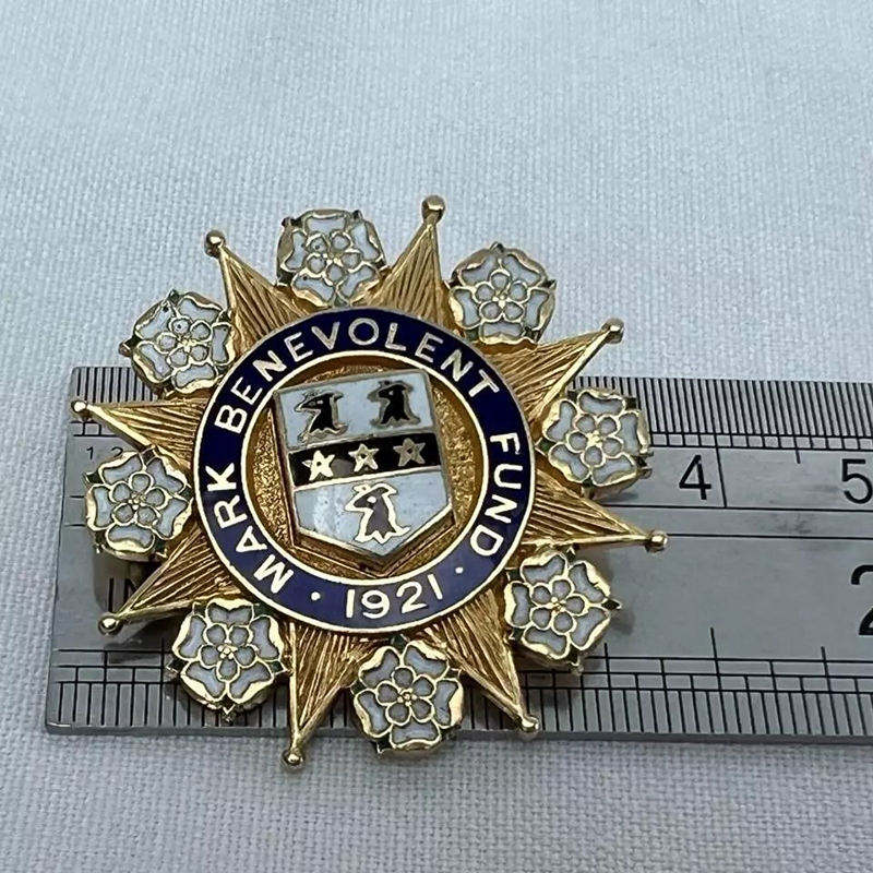 ตราสัญลักษณ์เมสันแบบเคลือบแข็งทองเหลืองสั่งทำพิเศษ ปี 2025 รุ่นใหม่ล่าสุด พร้อมตราสัญลักษณ์กองทุนการกุศลมาร์ค เบนโวลेंट ปี 1921 สำหรับติดปกเสื้อ ใช้ในพิธีการ