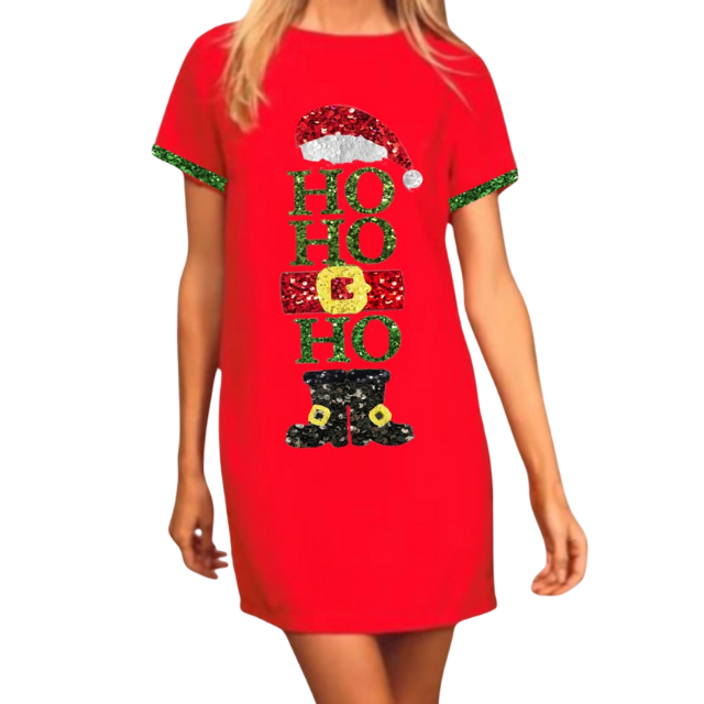 เดรสเสื้อยืดลำลองแบบเรียบง่าย ดีไซน์ยอดนิยม ประดับเลื่อม สำหรับเทศกาลคริสต์มาส ปี 2025 ขายส่ง สำหรับสุภาพสตรีและวัยรุ่น