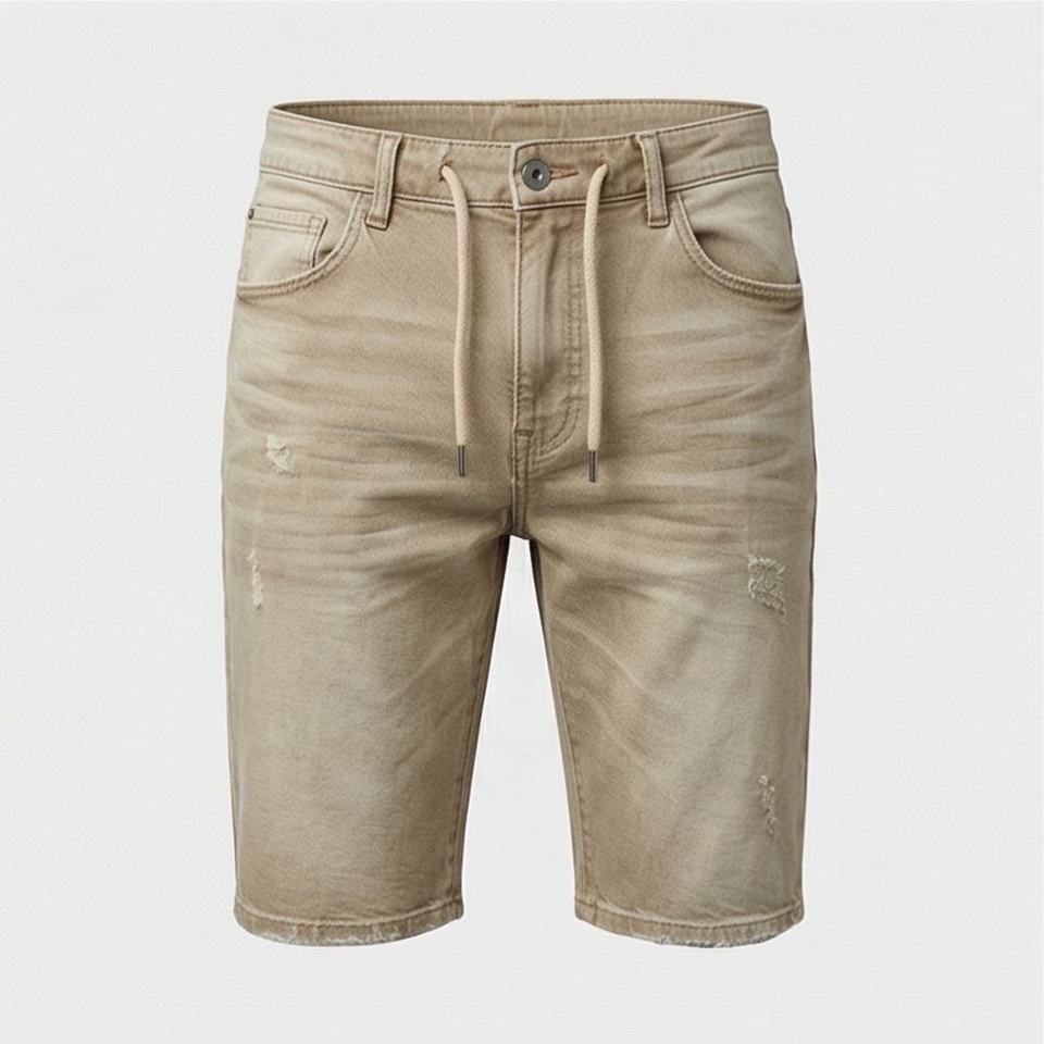 กางเกงยีนส์ขาสั้นทรงตรงแบบระบายอากาศได้ดี ปี 2025 สำหรับผู้ชาย ผ้าฝ้าย OEM รับผลิตตามแบบ ปักลาย ซักแล้ว น้ำหนักเบา สไตล์ลำลอง ทันสมัย