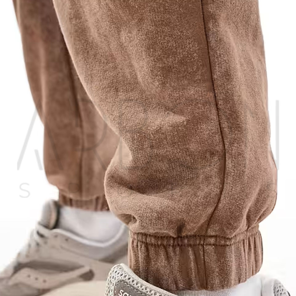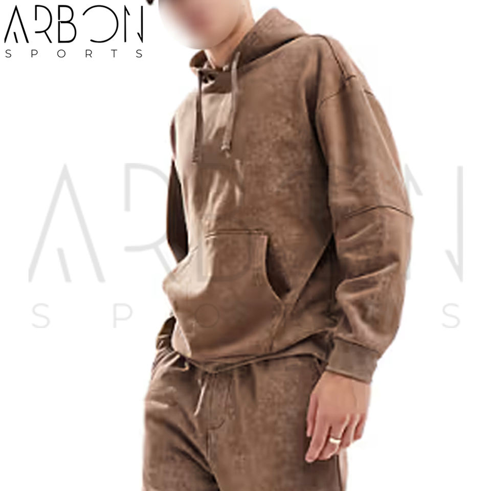 ชุด2025มีฮู้ดและจ็อกเกอร์สำหรับผู้ชายชุดวอร์มล้างกรดใส่สบายสีน้ำตาลเข้ม