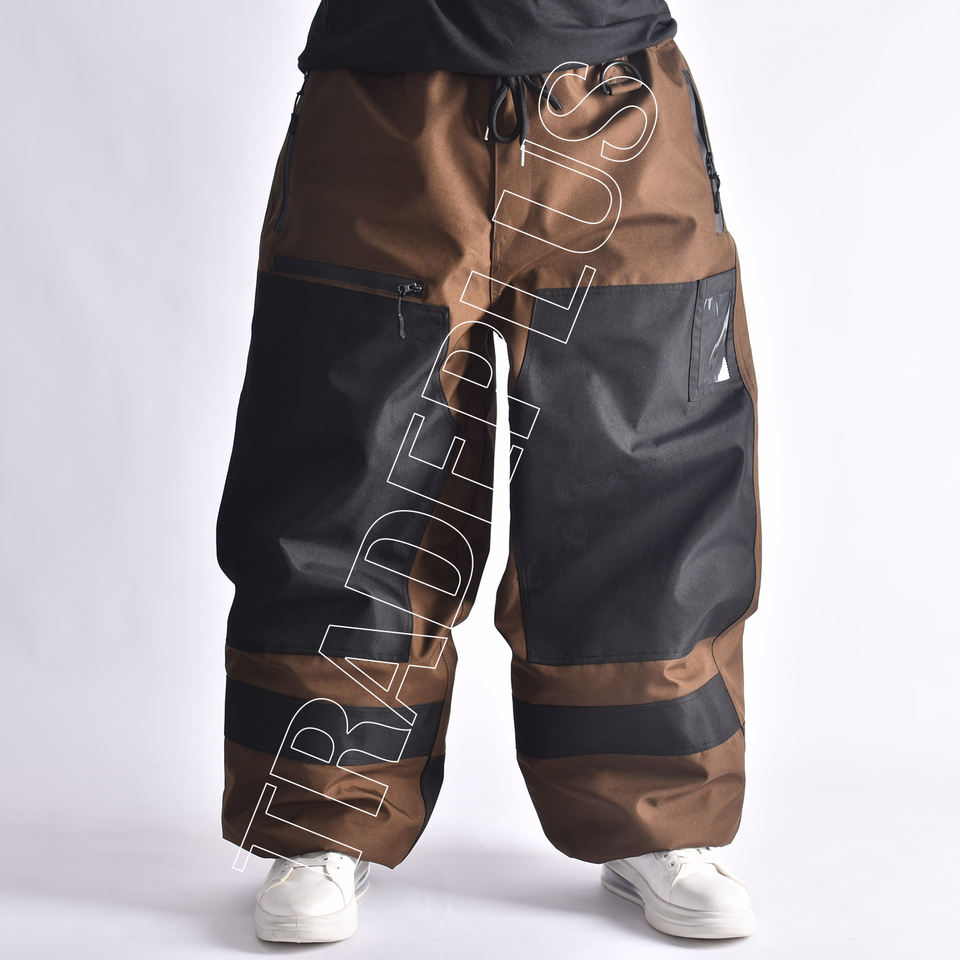 กางเกงกันหิมะสีน้ำตาลและสีดำ ปี 2025 พร้อมเชือกผูกเอว กระเป๋าแบบคาร์โก้ ชายกางเกงปรับได้ และฉนวนกันความหนาวสำหรับฤดูหนาว