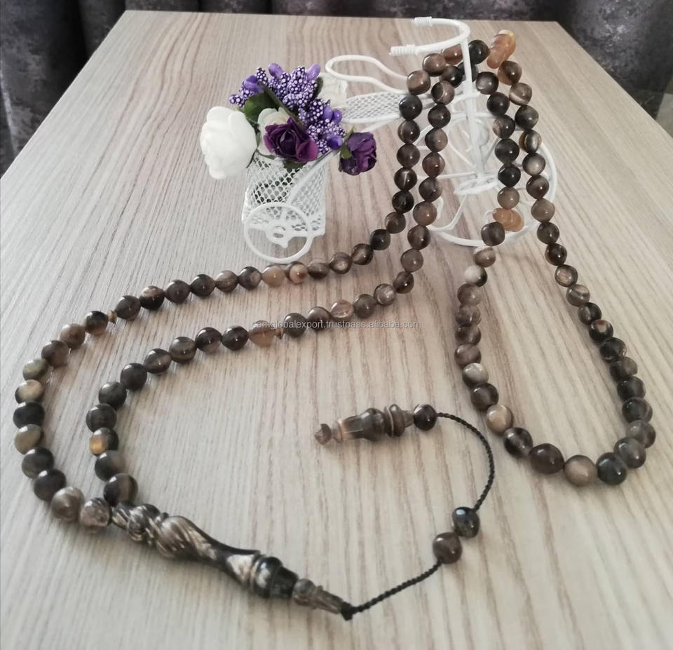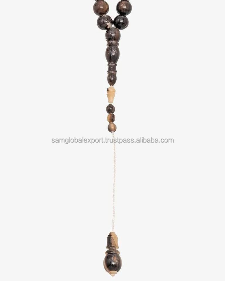 ลูกประคำทำจากเขาควายโบราณ ปี 2025 แบบเลียนแบบสัมผัสเหมือนจริง 33 เม็ด ทรงกระบอก มิสบาห์ งานแฮนด์เมด ของขวัญสำหรับชาวมุสลิม