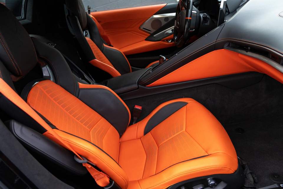 2025 คอร์เวทท์ ซีโอ6 คอนเวอร์ทิเบิล 3LZ ~4,300 ไมล์, เครื่องยนต์ LT6 V8 670 แรงม้า, ชุดแต่งคาร์บอนแอโรและชุดแต่งภายนอกเครื่องยนต์, ภายในแบบฮาบาเนโร