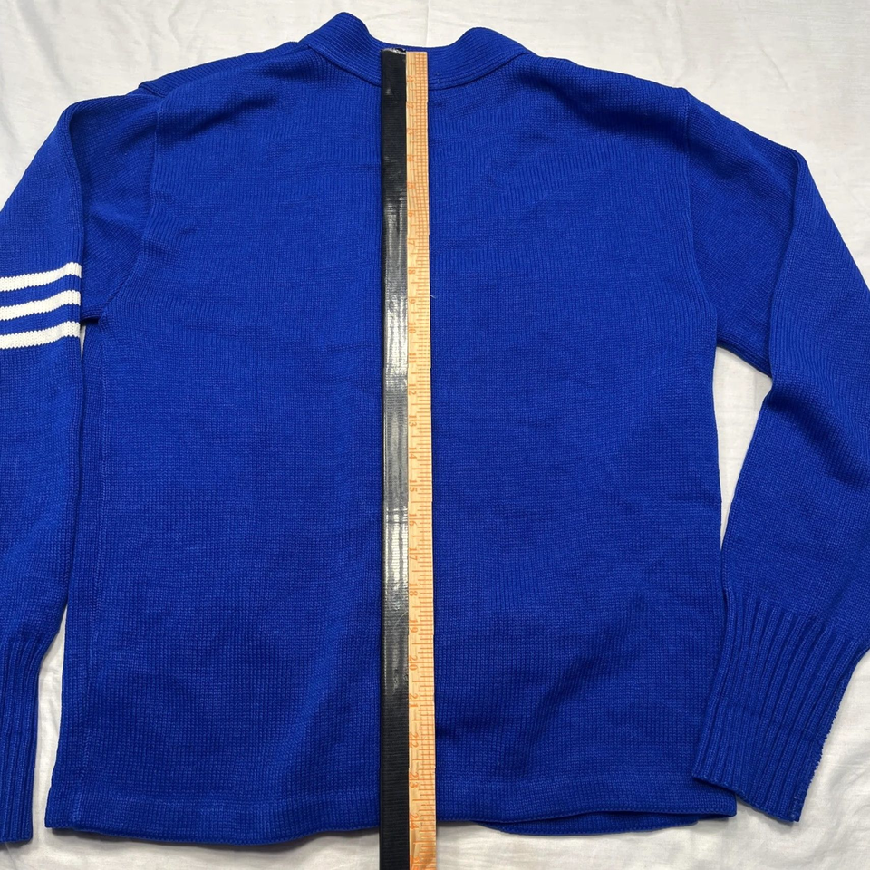 เสื้อคาร์ดิแกนไหมพรมปักลายตัวอักษรแบบวาร์ซิตี้ สีน้ำเงิน ไซส์ XS สำหรับผู้ชาย ปี 2025 / เสื้อคาร์ดิแกนไหมพรมปักลายตัวอักษรแบบวาร์ซิตี้ สไตล์ยุค 90 สำหรับผู้หญิง