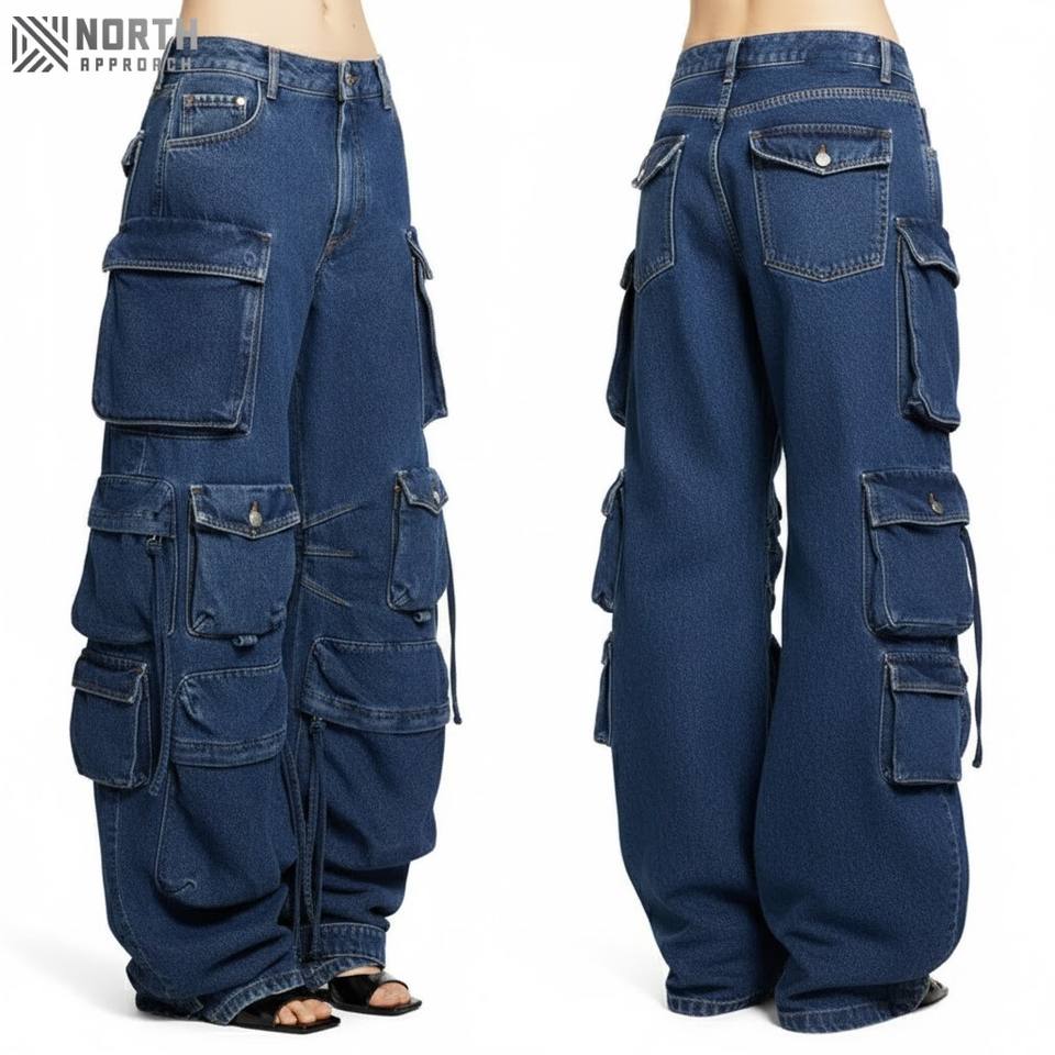 กางเกงยีนส์ทรงหลวมเอวสูงหลายกระเป๋า รุ่นลำลอง ปี 2025 กางเกงขายาวทรงกระบอก กางเกงยีนส์ผู้หญิง กางเกงคาร์โก้