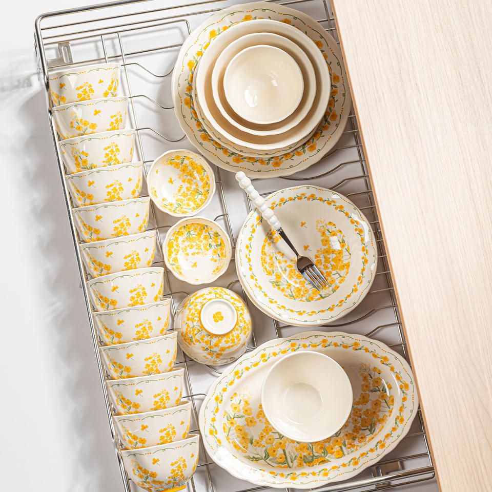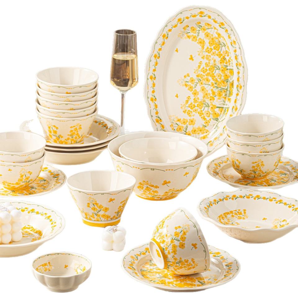 ชุดอาหารเซรามิกปี 2025 ใช้กับไมโครเวฟได้ สไตล์ญี่ปุ่น เคลือบใต้ผิว เหมาะสำหรับเป็นของขวัญขึ้นบ้านใหม่ บรรจุในกล่อง ประกอบด้วยชามข้าวและจาน