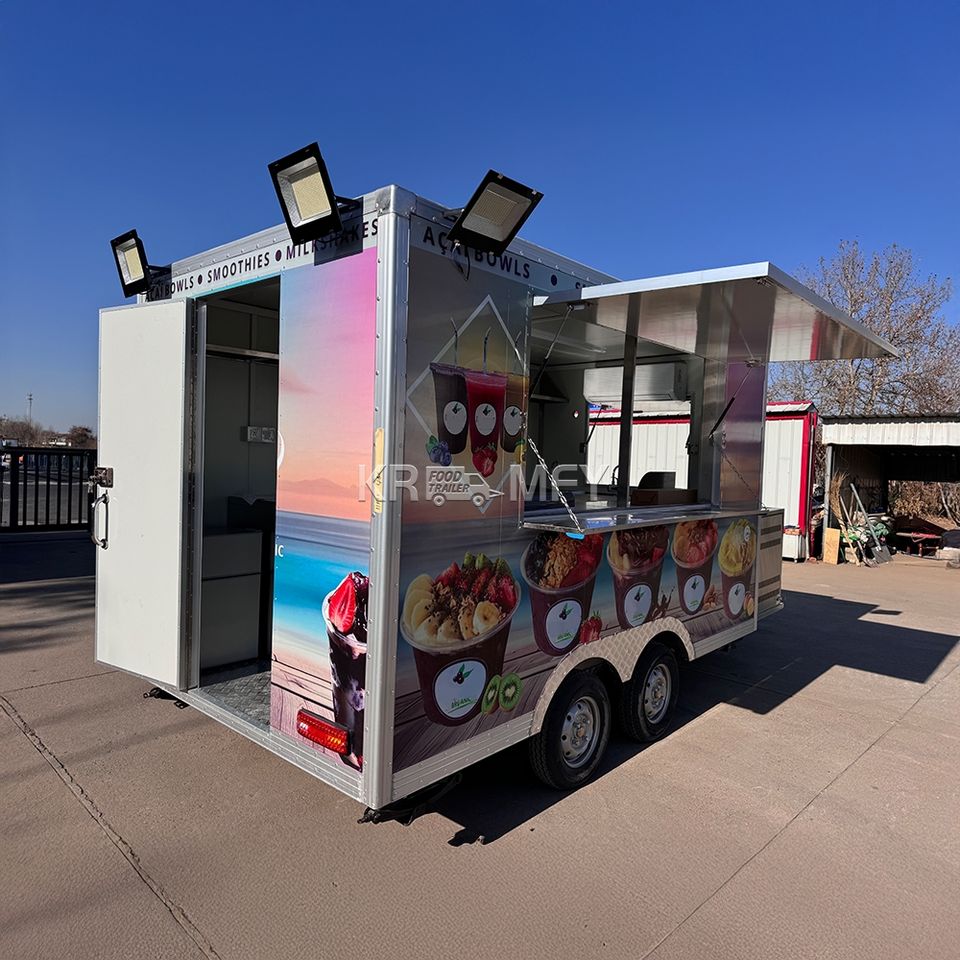 รถพ่วงสเตนเลสสำหรับขายอาหารเคลื่อนที่ ปี 2025 ได้รับการรับรองมาตรฐาน CE DOT สำหรับธุรกิจกาแฟเคลื่อนที่