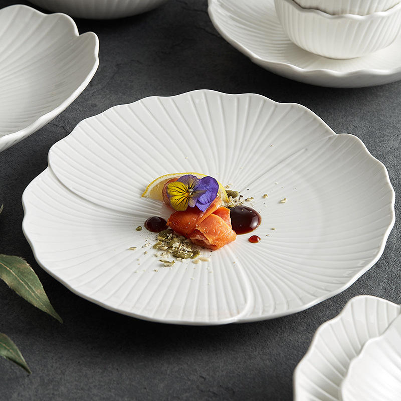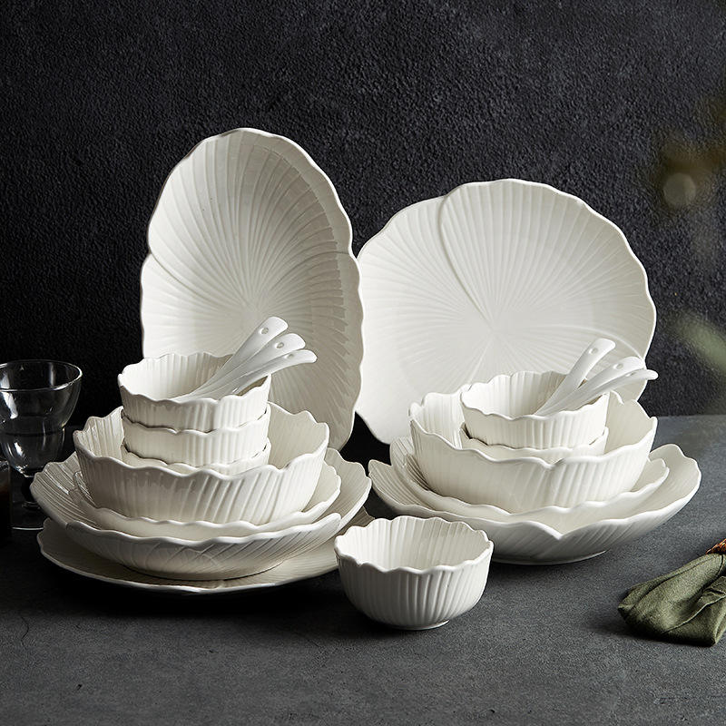 ชุดจานชามเซรามิกจีนปี 2025 ดีไซน์ทันสมัยแบบมินิมอลสไตล์นอร์ดิก ลายพืช รูปทรงดอกไม้ ป้องกันการรั่วซึม