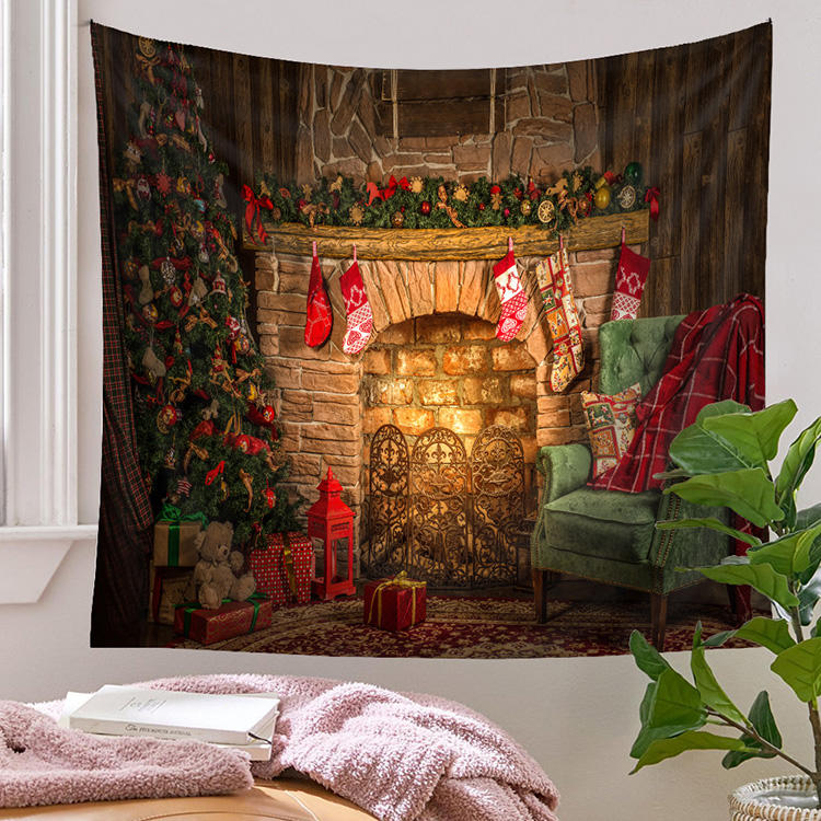 พรมแขวนผนังฉากหลังสำหรับห้องนั่งเล่นมีเตาผิงคริสต์มาสแบบแขวนสำหรับ2025
