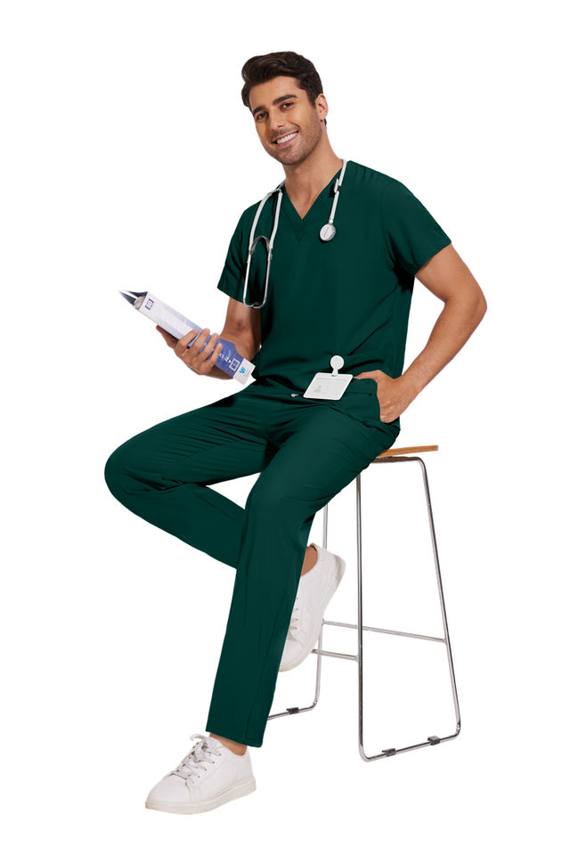 2025ชุดกางเกงคอวีแขนสั้นสำหรับผู้ชายกางเกงขาตรงน้ำหนักเบาสวมใส่สบายแนวคลาสสิกสำหรับทางการแพทย์โรงพยาบาลร้านทำศัลยกรรม