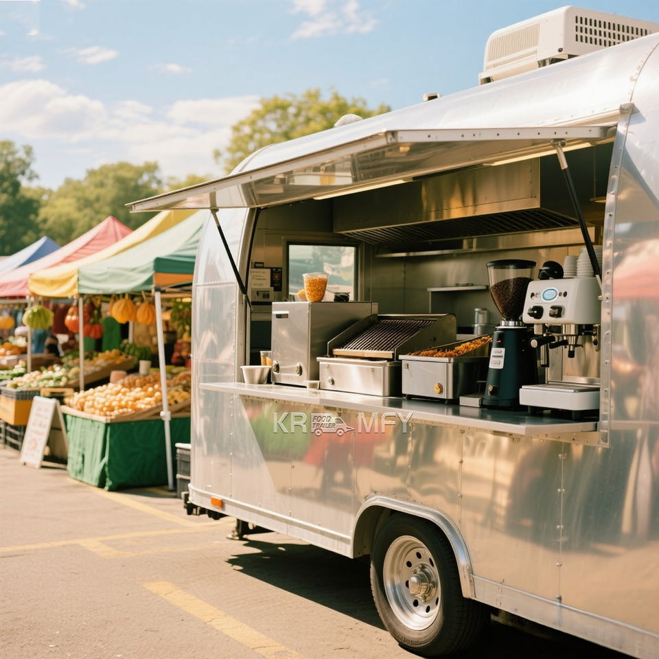รถพ่วงขายอาหารริมทางกลางแจ้ง