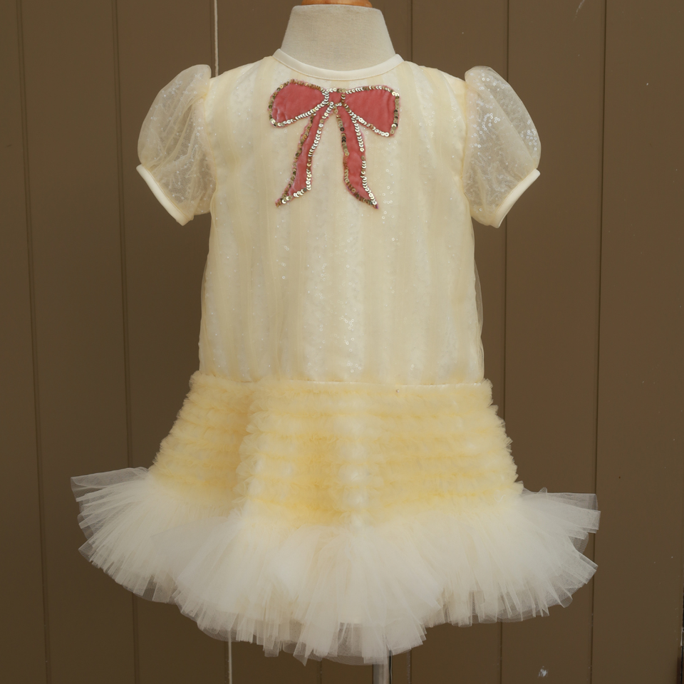 คอลเลกชัน2025บูติกดีไซน์วินเทจคอกลมประดับเลื่อมแวววาวประดับด้วยลูกปัดหลายชั้นยาวถึงเข่าเจ้าหญิงระดับพรีเมี่ยม ODM - Liana