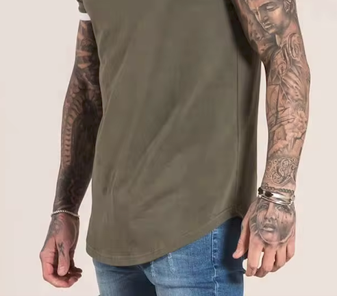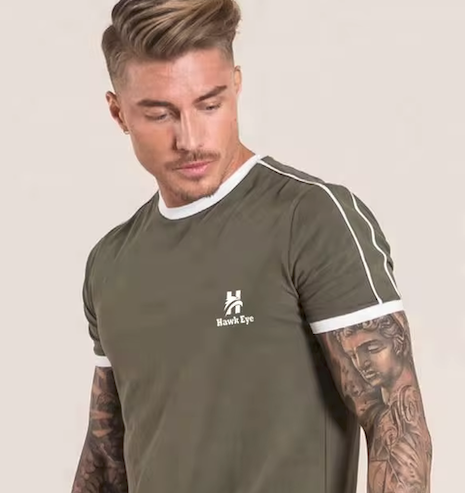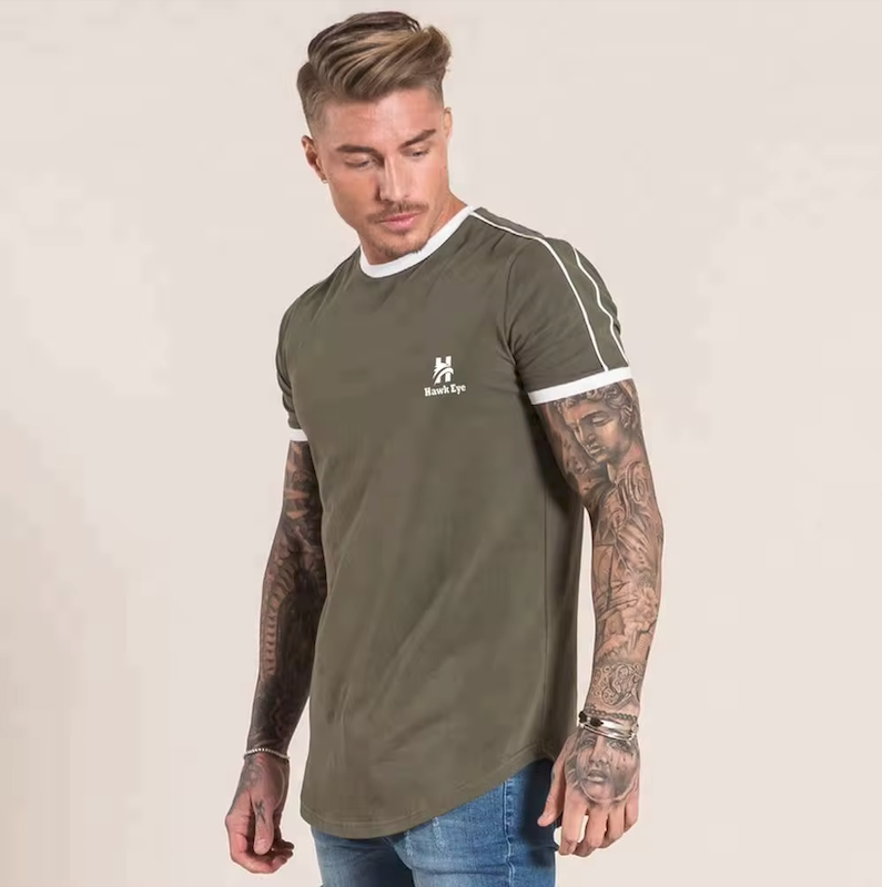 เสื้อยืดคอกลมชายสี2025มีซับในสีขาวที่แขนทั้งสองข้างพร้อมโลโก้ตามสั่ง