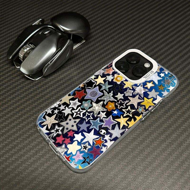 2025 Colorful Stars Color Silver Mobile Phone Case for Iphone 16 15 Pro Max 14 13 12 11 Imd Transparent Shockproof Cover 2025