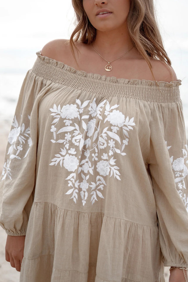 2025 Cotton Embroidered Beach Wear Dress Holiday Robe Bikini Cover up Suntan Tunic Dress Blouse