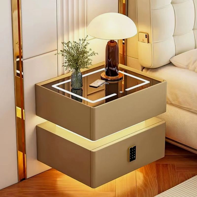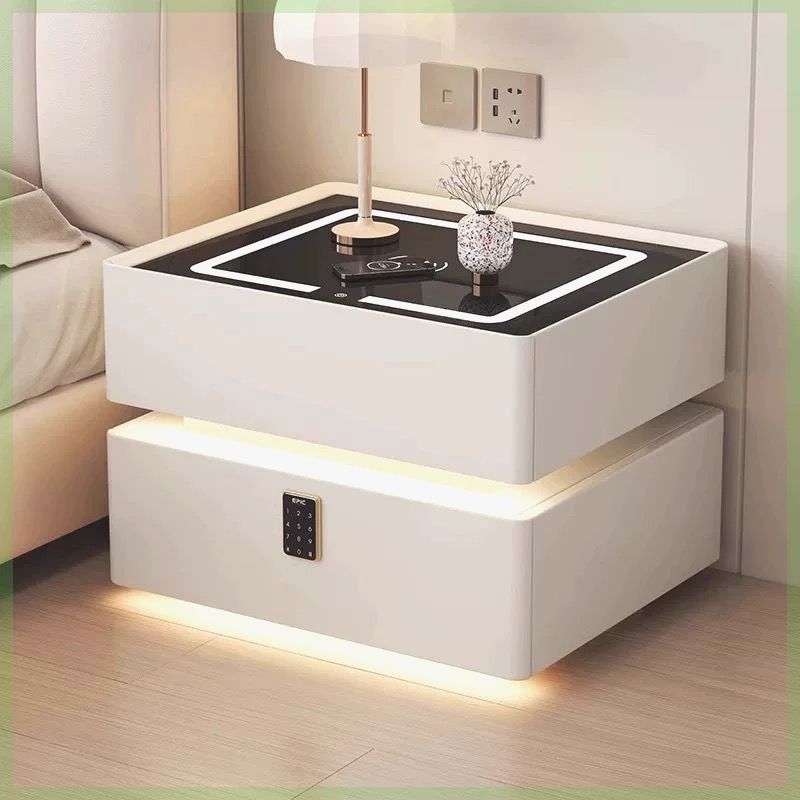 โต๊ะข้างเตียงอัจฉริยะครีม2025ทันสมัยทันสมัยโต๊ะข้างเตียงเรียบง่ายพร้อมผิวหินชนวนเฟอร์นิเจอร์ห้องนอนสุดหรูไม่ต้องติดตั้ง