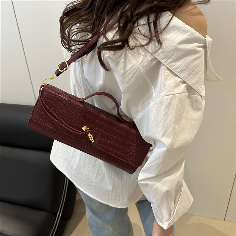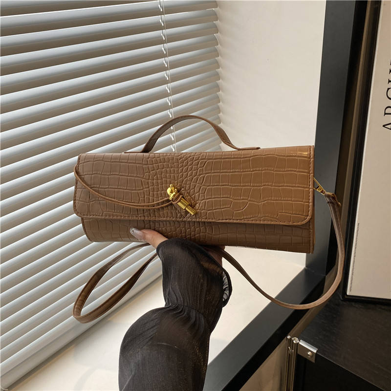 กระเป๋าถือสะพายข้างทรงสี่เหลี่ยมลายจระเข้ ปี 2025 วัสดุ PU สีพื้น ความจุเยอะ แฟชั่นสำหรับผู้หญิง
