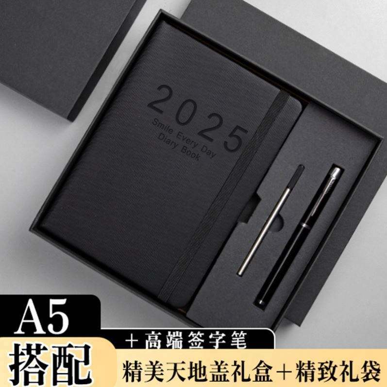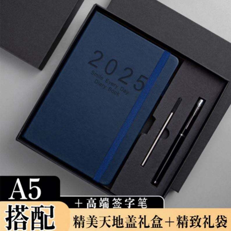 สมุดแพลนเนอร์รายสัปดาห์และรายเดือนปี 2025 แบบกำหนดเอง 365 วัน ขนาด A5 ปกหนัง PU พร้อมปฏิทิน 100 แผ่น เย็บด้าย ปกแข็ง ชุดของขวัญ