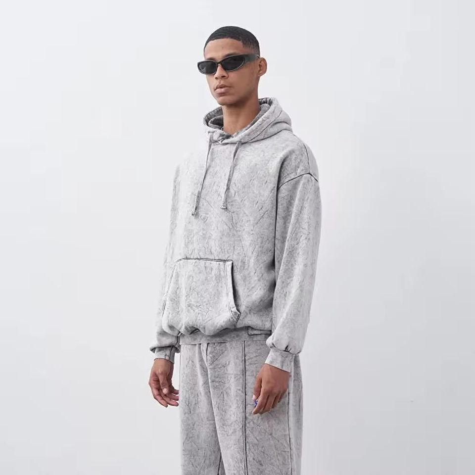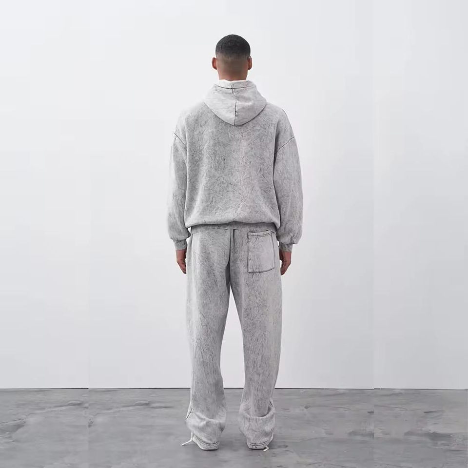 ชุดวอร์มผ้าทอแบบย้อมสีเอซิดทรงขาบาน รุ่นสั่งทำพิเศษ ปี 2025 ผ้าฝ้าย 100% แห้งเร็ว สไตล์วินเทจ สตรีทแวร์ ชุดเสื้อและกางเกง
