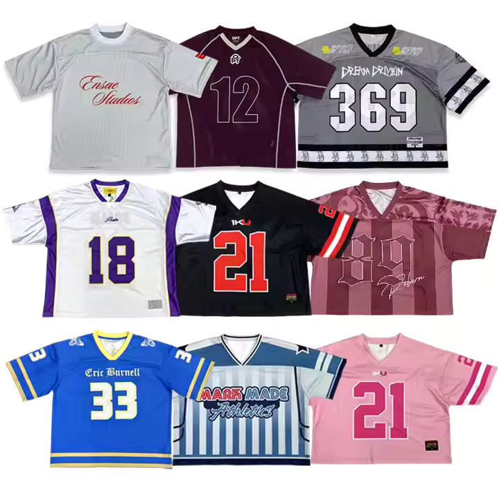 เสื้อยืดคอกว้างทรงคลาสสิกแบบอเมริกันปี 2025 ผ้าตาข่ายทรงบ็อกซี่ ตัดสั้น แฟชั่นแนวสตรีท สปอร์ตแวร์ เสื้อฟุตบอล ไซส์พลัส