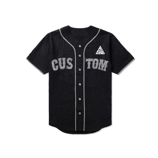 เสื้อเบสบอลแบบสั่งทำปี 2025 สำหรับผู้ชาย สีดำ ติดกระดุม เสื้อกีฬาแขนสั้น ปักลายด้านหน้า สตรีทแวร์ ชุดทีม ขายส่ง ผ้าออร์แกนิค 100%