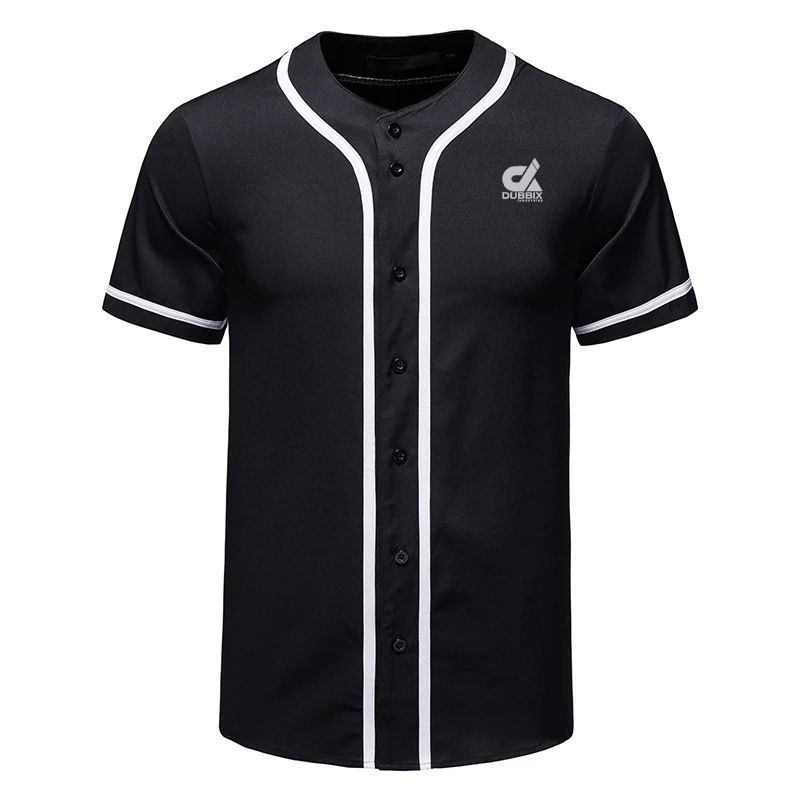 เสื้อเบสบอลสีดำแบบกำหนดเองปี 2025 พร้อมแถบสีขาว ติดกระดุม ชุดทีมแบบเรียบ เสื้อกีฬา ขายส่ง OEM