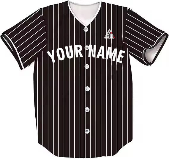 เสื้อเบสบอลสีดำแบบสั่งทำปี 2025 คอวีสีขาวติดกระดุม ชุดทีมพร้อมปักชื่อและหมายเลขแบบมืออาชีพ ขายส่ง