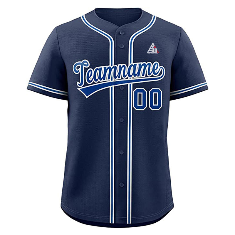 เสื้อเบสบอลสีดำขาวพิมพ์ลายตามสั่งปี 2025 แต่งกระดุมสีน้ำเงิน ชุดทีมพร้อมปักชื่อและหมายเลขแบบมืออาชีพ แขนสั้น