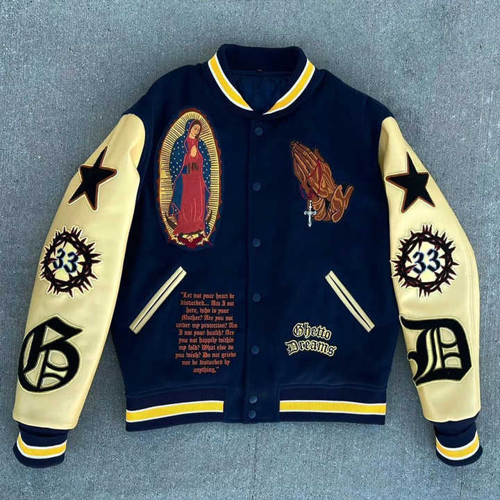 เสื้อแจ็คเก็ตบอมเบอร์ขนสัตว์ปักลายเชนิลล์แบบกำหนดเองปี 2025 สไตล์วาร์ซิตี้เบสบอลสำหรับผู้ชาย ฮิปฮอปหลากหลายแบบ