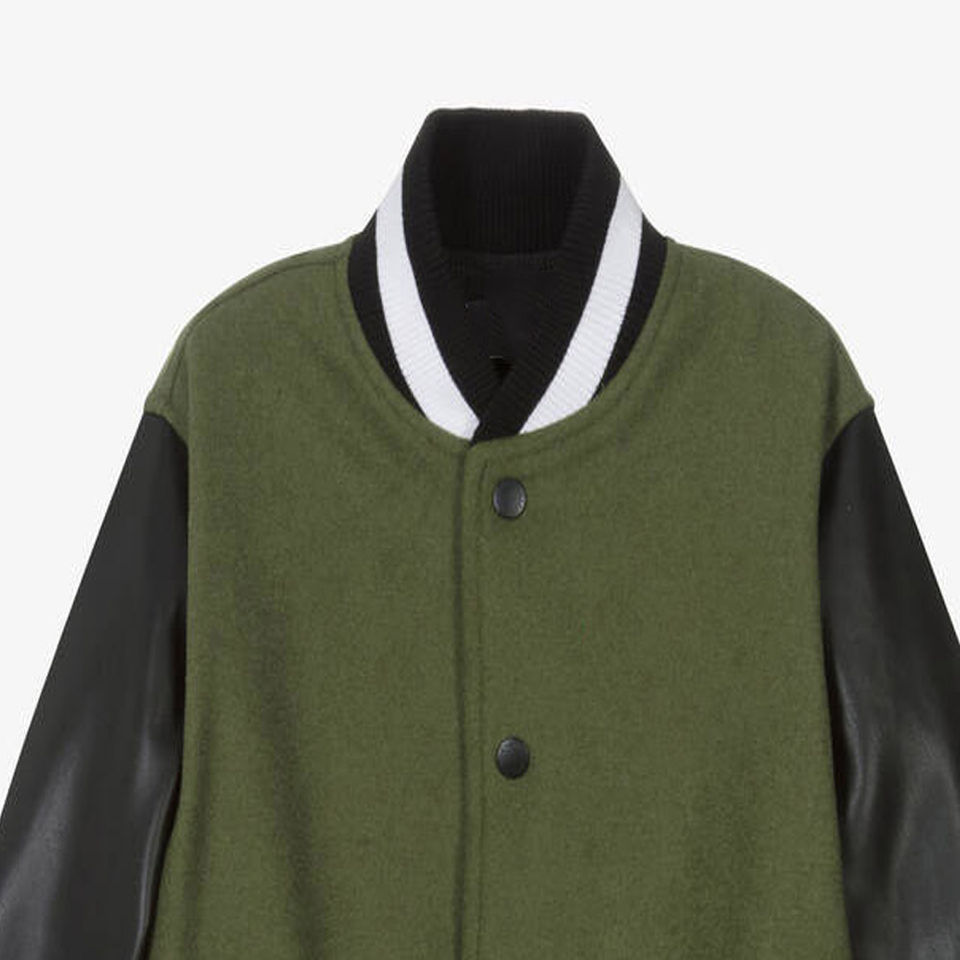 แจ็คเก็ตเบสบอลแบบวาร์ซิตี้ลายตัวอักษรออกแบบเองปี 2025 แจ็คเก็ตผ้าแคนวาสกันลมสำหรับฤดูหนาว คอตั้ง ลายโลโก้ ขายส่ง