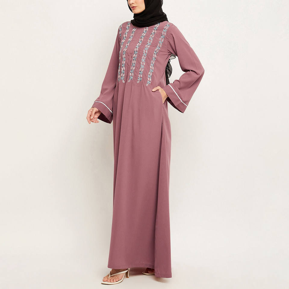 2025 อาบายะปักลายดูไบแบบสั่งทำสำหรับผู้หญิง เสื้อคาร์ดิแกนยาวปักลายดอกไม้สีชมพูเรียบร้อย ขายส่งชุดมุสลิม